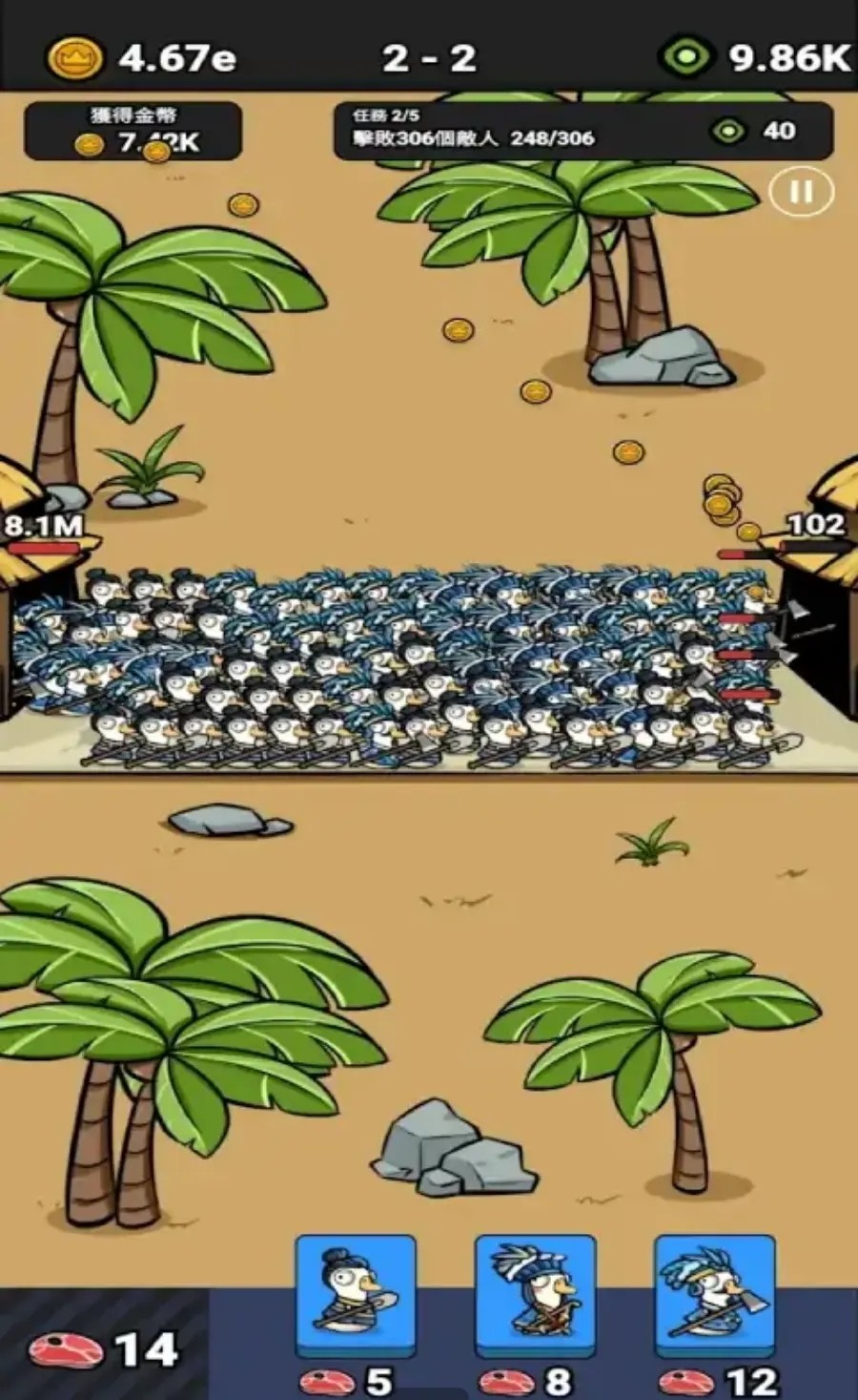 鹅鹅出击在游戏中使用食物来召集部队,在不断战斗中击败敌人,给玩家带来了超多不同的模式,可以让玩家在菜单中适当的进行挑选,不需要观看任何广告,玩家才能够获得更多的游戏奖励。