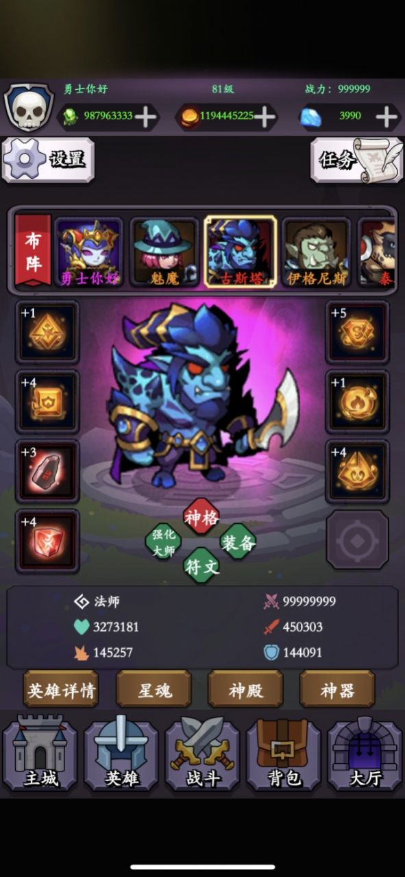 提高着英雄的能力,角色不同,可以带来更好的战斗和闯关;