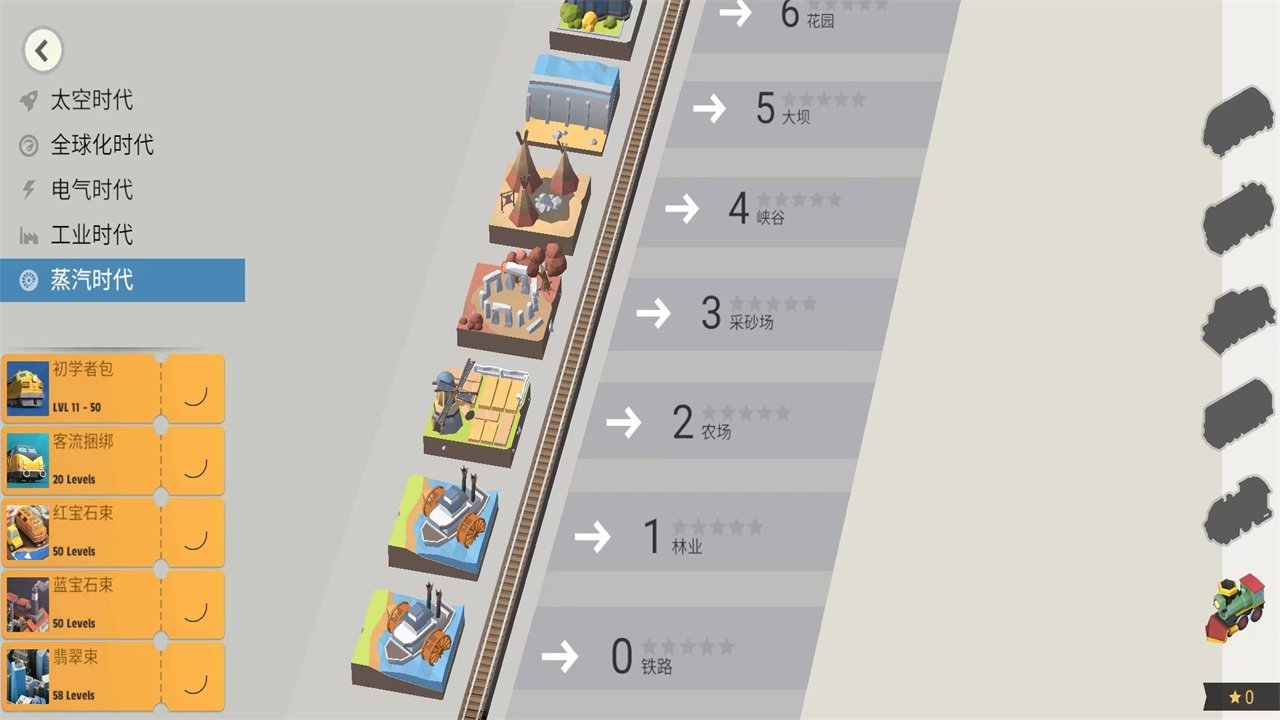 火车山谷2采用了非常好玩多样的场景关卡供玩家们体验多样化的火车经营模拟驾驶体验,在其中你可以不断地通过完成每一关的关卡任务来解锁更多的火车种类和地图,建设属于自己的火车山谷。