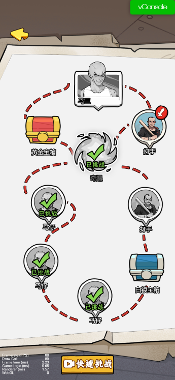 挑战:点击地图人物进行挑战,战力不够会失败,可在炼体功能提高战力!