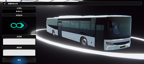 然后组建一个公司,选择公司名、公司标志、车辆颜色等,选择好之后点击继续;