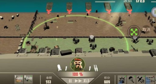 游戏目前涵盖数十种级别、4种被动技能和5种主动技能,每一轮可以选择不同的部队类型,随着游戏进度的推进,还将开放不同升级道具。你也可根据战争形势排兵布阵。