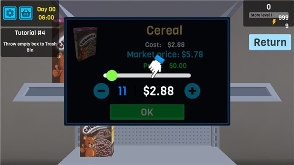 超市仓库资源丰富,可以按照自己的喜好进行超市经营模拟