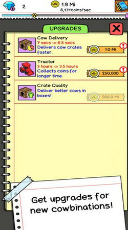 游戏中的奶牛可以通过合成进化,每次进化都能带来新的品种和更高的收益。