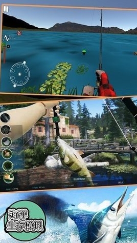 画面真实,玩法逼真的钓鱼模拟器游戏,逼真地模拟出各种钓鱼场景,如湖泊、河流、海洋等,包括不同的水域环境、天气状况、季节变化等。玩家可以看到清澈的湖水、波光粼粼的水面、摇曳的水草以及岸边的树木等,仿佛身临其境。
