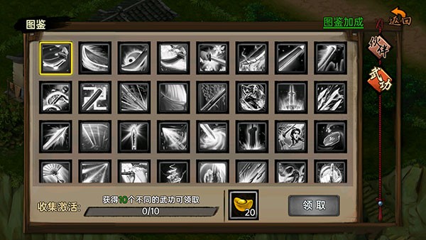 解锁更多的武侠图鉴和武功图鉴,可以获得的属性加成也越高。