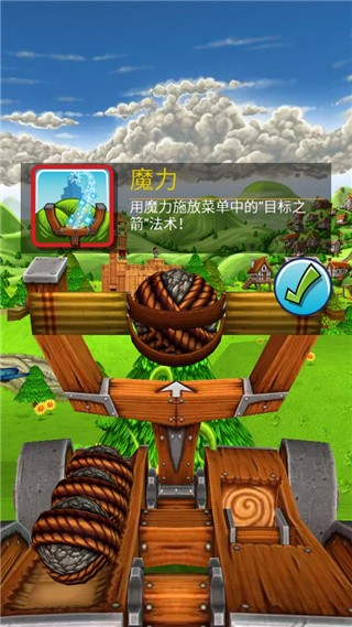 利用弹射车上的箭头来瞄准建筑物,攻击任意方向的建筑都有效。