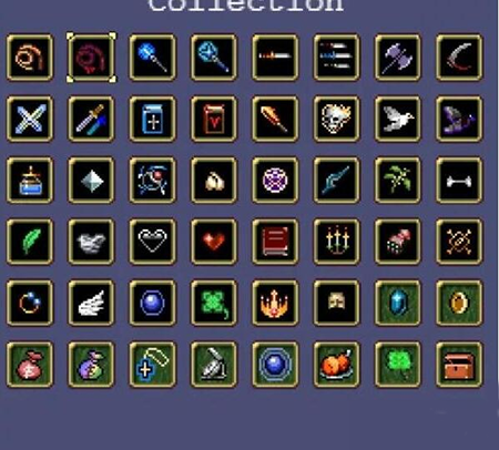 鞭子:在玩家角色贴图的上方生成一个可以穿透的近距离水平鞭影,方向为角色面对的方向。可享受投射物增加被动的加成,方向在面朝方向和背对方向之间循环,并且位置越来越高。可以通过快速转身的方法将鞭影集中在一边。需要Hollow heart进阶,进阶后伤害提升并且可以吸血。