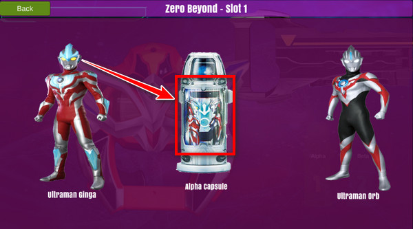 这个时候会出现两位奥特战士的图片,点击奥特胶囊中间的位置借用它们的力量!