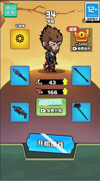 西游天命人是一款考验玩家操作和走位的割草游戏。游戏中有着丰富的关卡模式,玩家能够不断挑战收获更多的奖励,从而升级自己的武器道具强化自身实力,整体可玩性极高,非常适合打发时间!
