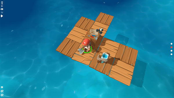 游戏中玩家需要操作角色离开木筏,拾取所需的物品,并建造相应的建造物,用于更好的生存。