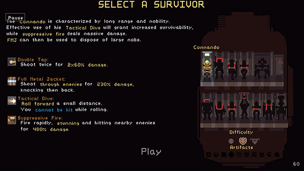 进入角色选择,初始阶段只解锁了一个角色,点击下方的“Play”开始游戏。