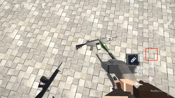 想要拿枪就必须先找到一把枪,找到枪后需要将准心放到枪上,这时屏幕左边会出现一个手指按钮,按住手指按钮即可拾取;