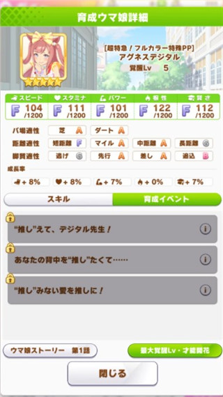 从图中我们可以看到五项属性所分别引导的关于马娘组成的数值。并且明显的可以看出根据赛距长短,需要的属性有所不同如何提升数值呢?除了最普遍的技能卡提升,训练提升外,还有基因继承,自身开花以及觉醒等游戏中种种提升数值的手段训练提升除了主属性提升外,也会提升部分副属性以及增加技能点