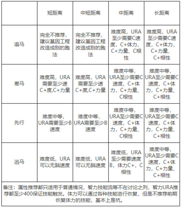 正所谓对症下药,只有让合适的马,通过合适的训练,跑合适的比赛,才能取得最终URA的优胜在熟悉上面的之后我们再来看看开服dalao总结的战术适应性与距离适应性的对应关系