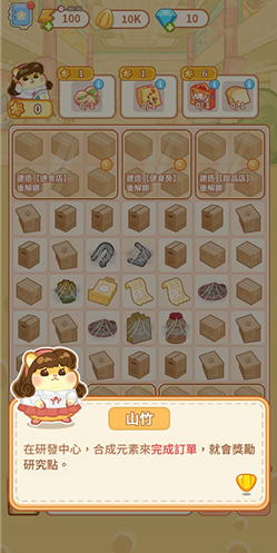 在 购物中心 的研发中心,鼠鼠需要将游戏框内的元素合成来完成订单!