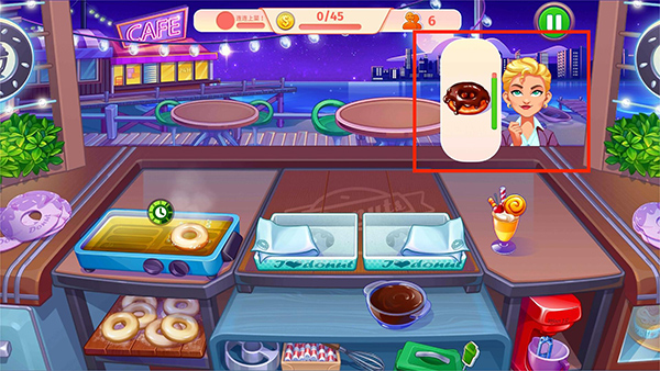 6、接下来只需要按顾客的要求做出相应的食物即可,注意要在耐心条消失前将食物做好,
