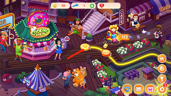 12、选择【信封】图标,可进行全套组合、装饰、效果、大厨服饰和顾客的装饰,以上就是疯狂大厨的玩法了。