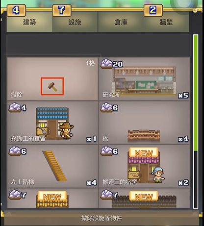 1.人员优先招设施类,后期靠设施类人员做食物、挖掘矿石、伐木、寻找宝石。溢出的东西可以卖了换钻石,菜单道具栏点出售。
