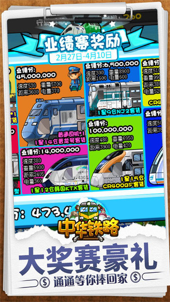 中华铁路 是一款模拟经营游戏,玩家在游戏中担任一家铁路公司的管理者,能够购买各类火车,并且还能规划新的列车线路,火车的收入都将归你所有。感兴趣的玩家快来下载体验吧!