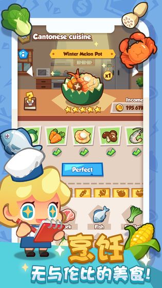 :多个不同风格的美食餐厅等你解锁,将那些高级员工一次收入麾下;--一键挂机系统优化: 一键挂机新增离线支持,即使不下线也能轻松获得各种收益;