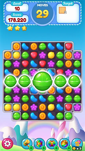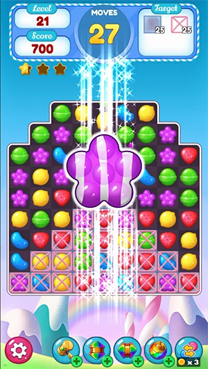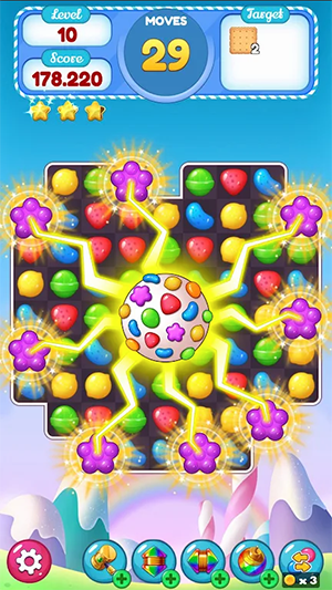 *解锁丰富的道具奖励,如炸弹和彩虹糖果,可帮助玩家更快地完成关卡并获得高分。