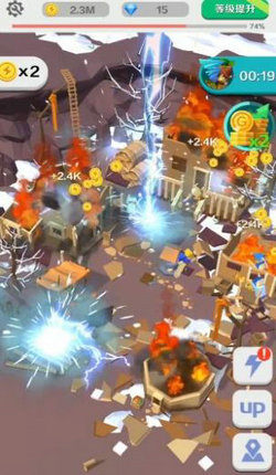 2、通过召唤雷电来摧毁房子获取收益,让玩家充分释放压力,享受破坏的快感。