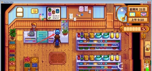 1、进入Stardew Valley游戏中,找到皮埃尔的杂货店,打开房门走进去。