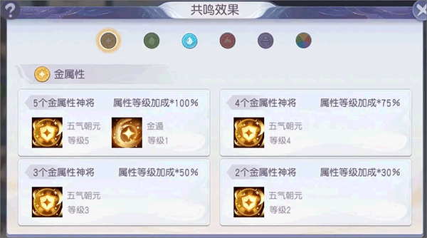 上阵一定数量相同属性 或五个不同属性的神将还可以获得五行共鸣的属性加成以及技能对阵容强度的提升有着非常明显的效果哦!快去开发不同的阵容吧!
