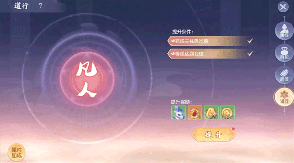 通过完成各类任务提升修为,能够为角色带来属性增益