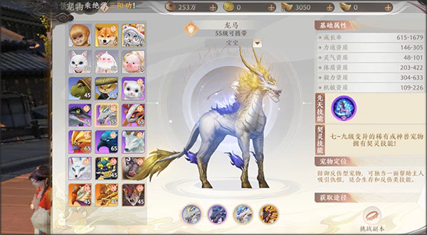 后续需要注意的是对战力影响最关键的几个方面,也是需要投入精力最大的地方,首先是出战宠物选择,不需要收集太多,绝大多数玩家有一两只宠物满足不同作战需要就完全够用。一只内功或外功输出,一只用于当做肉盾。主要通过挑战副本方式掉落引兽香,然后自己收集获得。这些稀有宠物通过不断繁殖还能得到变异类型,属性更加强大。