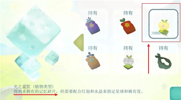 到大概250记忆碎片(具体多少忘了,没记)会解锁光之盆咒,一定获得未拥有碎片!!!!这个花费2w蒲公英。相比之下,直接等光之盆咒就好了,不要当大冤种(没错就是我)买水之盆咒,收集党可以等以后蒲公英自由再买。我也是第二天玩,走了好多坑,买完鲸鱼买水盆= =,发出来让大家避雷。