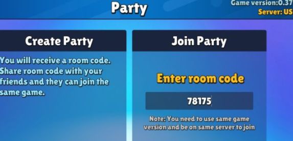 4、点击【PARTY】进入多人模式,玩家既能够自行创建房间,也能够通过输入好友的房间代码一同进行游戏。