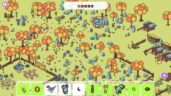 《Hidden Through Time》又名《穿越时空》《时代之下》,是一款风格可爱的“神秘视线”类游戏。在游戏里,你能够穿梭于世界波澜壮阔的历史长河之中,寻觅散落在地图各个角落的各类物品。其玩法十分简单,找齐所有物品就能进入下一张地图。这款游戏涵盖四个时代,依次为侏罗纪时代、远古人时代、埃及法老王时代以及文艺复兴时代。从恐龙岛的石器时代起,游戏整体难度会逐步提升。一开始要找的物品较大,到了后期会出现超多小物品,而且还有一系列物品被遮挡,得移开其他物品才能发现。在满屏的手绘图案里寻找隐藏于屏幕上的物件,这需要你仔细观察每一处地方,难度颇大。喜爱寻物游戏的玩家不妨来尝试一番。