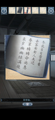 就近原则,先来到厨房把架子上的盐和灶台上的米装好,然后来到井边装上水,最后来到有一幅画的房间装上味增,不要着急回去,再去看看游戏最开始的地方,发现三个果实后面有图案,点进去以后记下来,然后回到拿衣服的房间