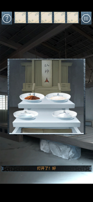 开始依照提示摆放贡品,这些贡品分别是味增、米、水、盐(没错,这里说的是象形字,味增对应两个口,“十”加上“叉”组成了米,水从象形字上直接就能看出来,盐则是取其象形字下面的部分 ),摆放完毕就能获取到工具。