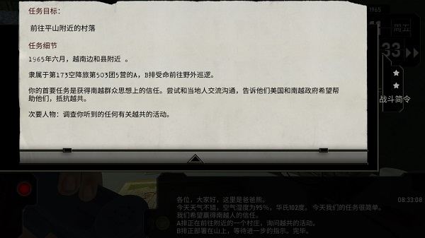 游戏难度重点在于文字回馈的信息提取,在此你可以通过报告来了解作战部队的位置、状态以及战斗状态。在命令菜单选项中,有包括移动、接敌、撤退以及停止,了解当前战役的主要作战任务,通过无线电的信息分享传导,直面敌人。目前,无线电指挥官战役任务共有9项,每一项作战难度都极具考验指挥官的智慧和军事才能。期间,你可以切换故事模式、指挥官模式以及自定义模式来沉浸式体验现代战争的真实战场,佩戴耳机效果更佳哦!