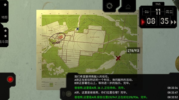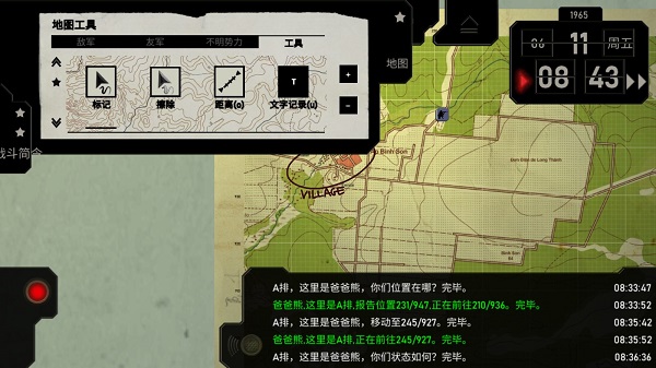 A排前往村庄,你可以通过发送相关无线电信息来确认A排所在位置,具体方法:打开无线电面板,选择单位>报告>位置,然后松开无线电按钮。