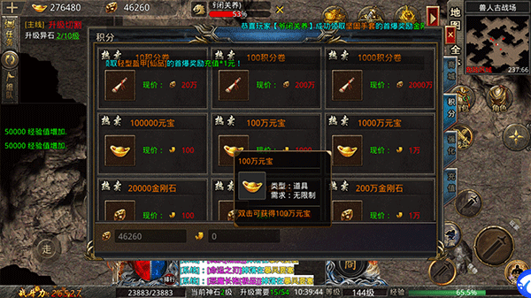 元宝来源:装备回收,怪物掉落,游戏活动,充值