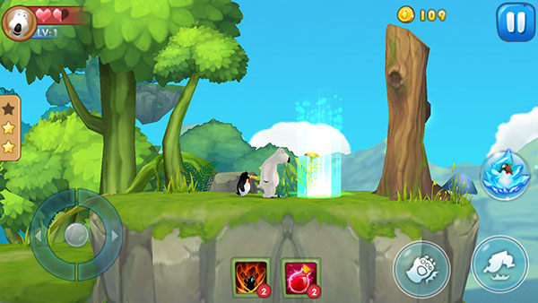 7、通过操控人物来进行翻滚、跳跃、冲刺等动作。非常不错的冰冻风格,看起来,体验起来都有一种清凉的感觉,看起来有倒霉熊的风格。