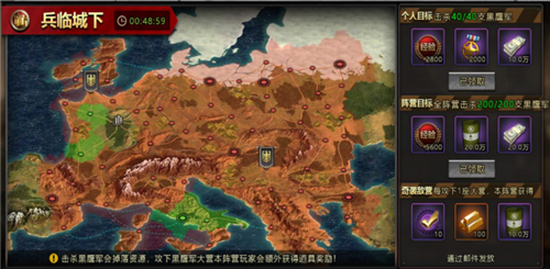 这个国战项目开始后,除了三个阵营的主城和巴黎,全地图都将变成黑鹰军的天下且有迷雾。玩家只能从自己的主城和巴黎开始往外打城,奖励分为个人目标、阵营目标和奇袭敌营三种,击杀黑鹰军头目也可获得黑鹰宝箱,可开出银票、锤子、研发许可和朗姆酒等奖励。其中个人目标和阵营目标都比较好完成,这场国战的关键是奇袭敌营。整场国战一共会刷出三座黑鹰军大营,出现地点随机,那么如何才能更大概率的攻打大营呢?