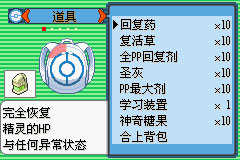 回复药、复活草、圣灰、神奇糖果、PP回复剂、PP最大剂各10个