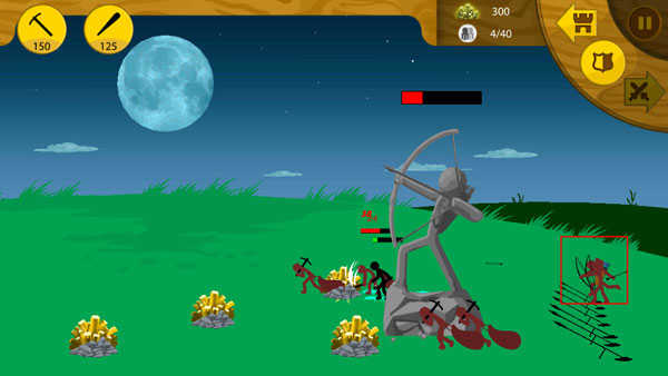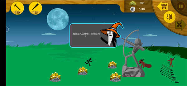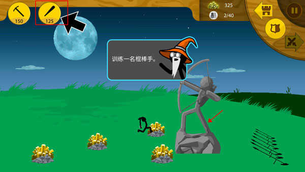点击左上角右边的按钮来开始训练一名棍棒手,将敌人的雕塑摧毁即可通关。