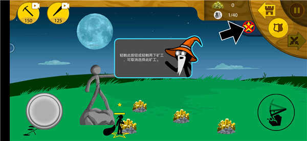 选择左上角的图标来召唤火柴人,点击火柴人可以亲自操控他们。