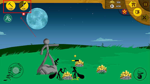 点击右上方,可以创造专门挖矿和进攻的士兵;