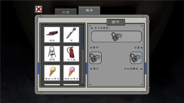 回到主页面点击“提示”,这里是关于该游戏的一些道具和谜题。