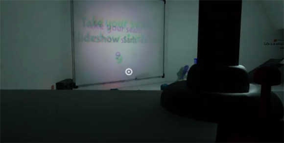 按完后来到大厅的二楼将红色灯泡的投影移动到屏幕中间