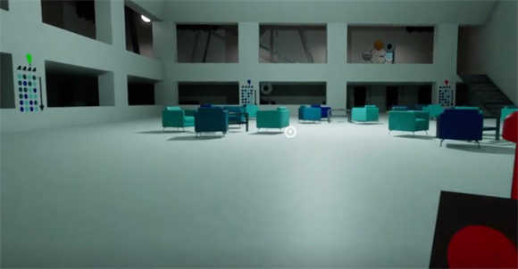 3、玩家需要依次点亮桌上的灯泡,根据桌子周围不同颜色的椅子,对照墙面相应颜色来点亮即可。