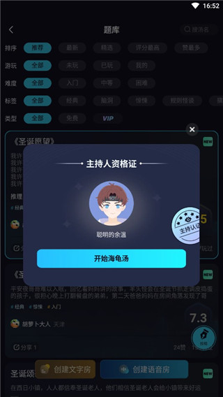 5、全部答对后即可获得主持人资格证,然后就可以创建房间了。