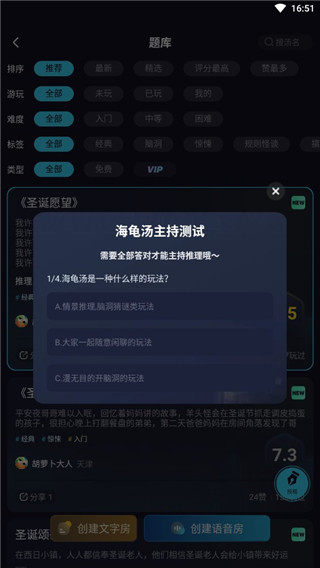 4、房间主为主持人,需要回到四个问题才可创建,问题都是比较简单的,没有难度。